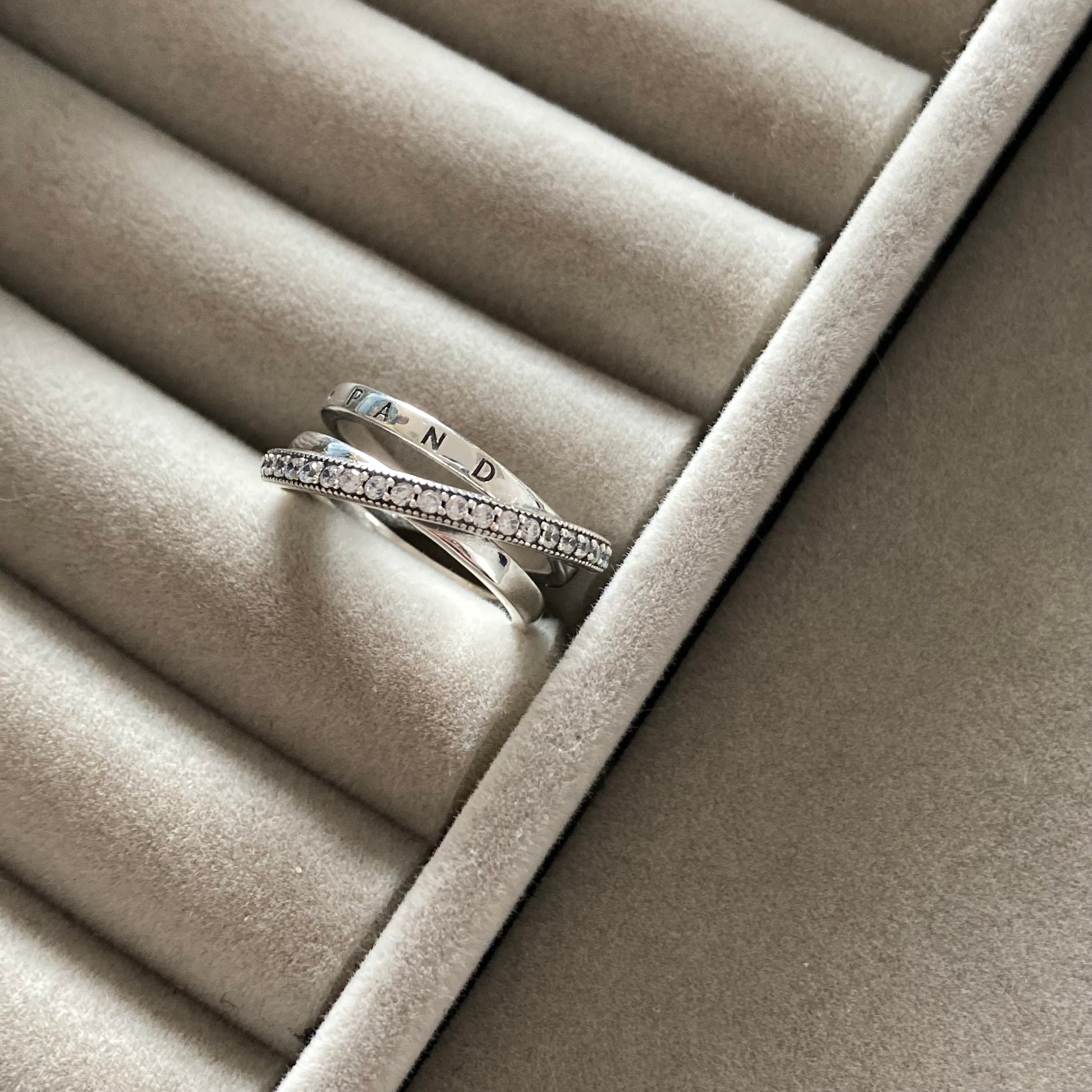 Anillo Cruzado Triple Banda en Pavé