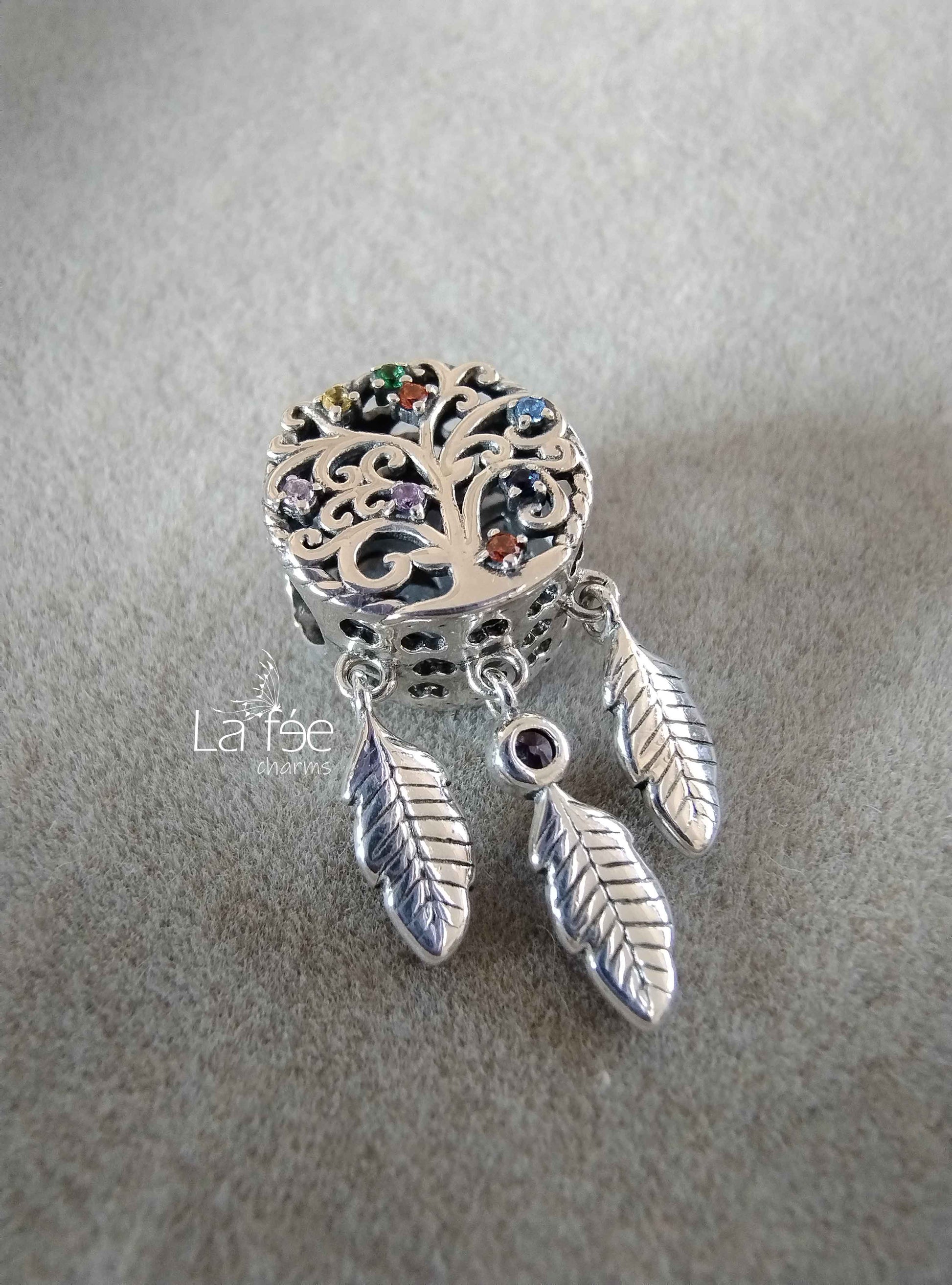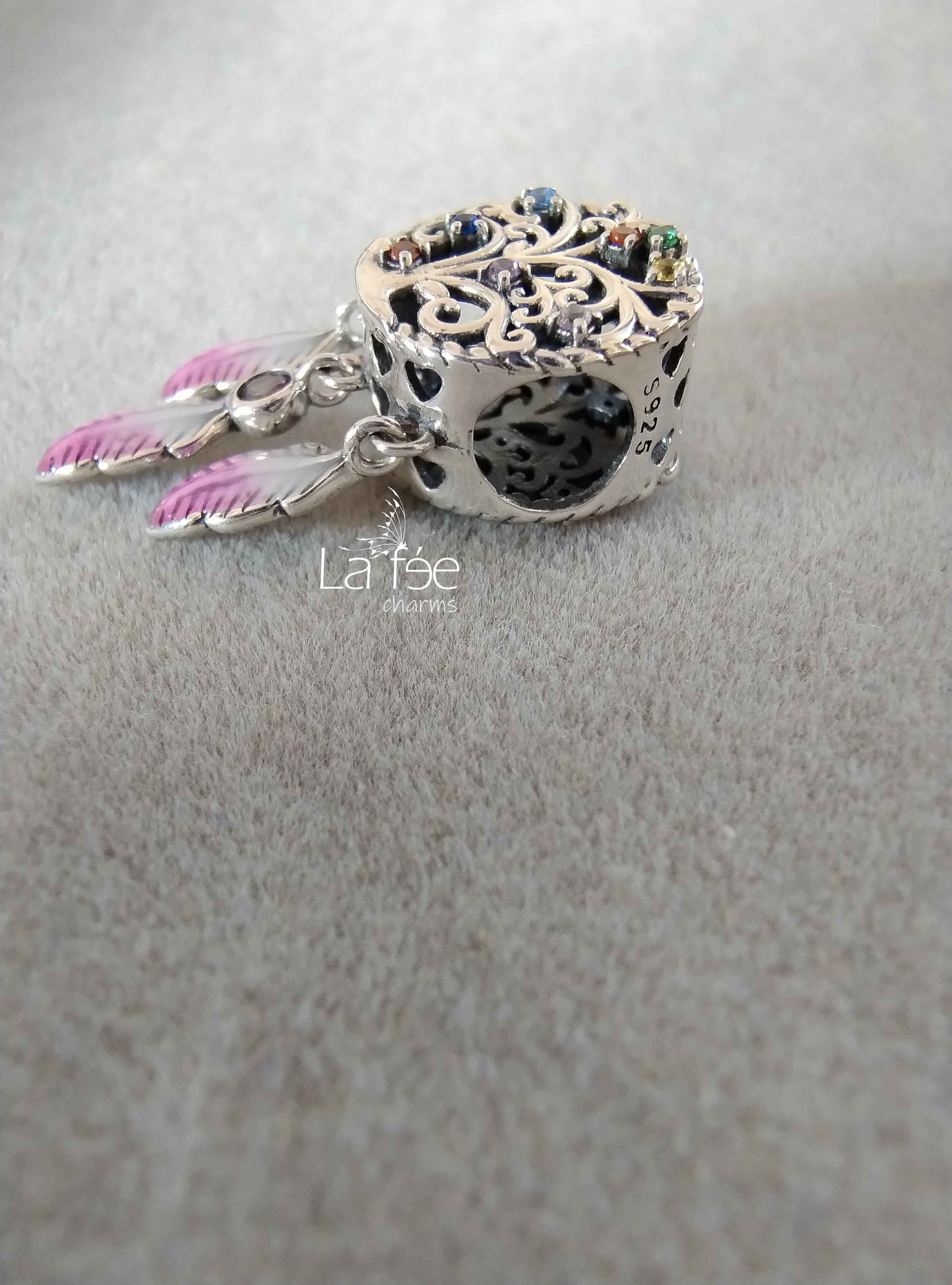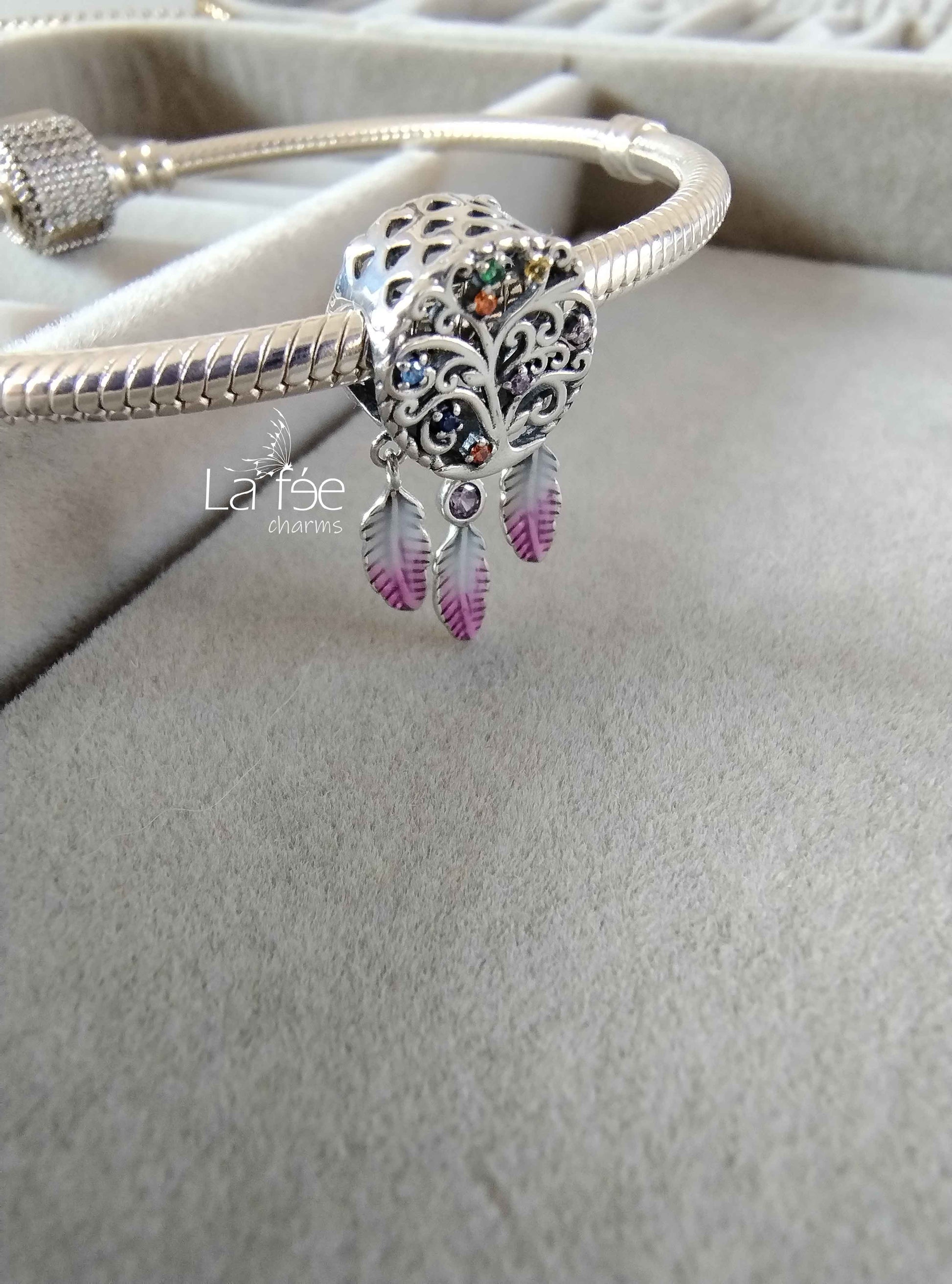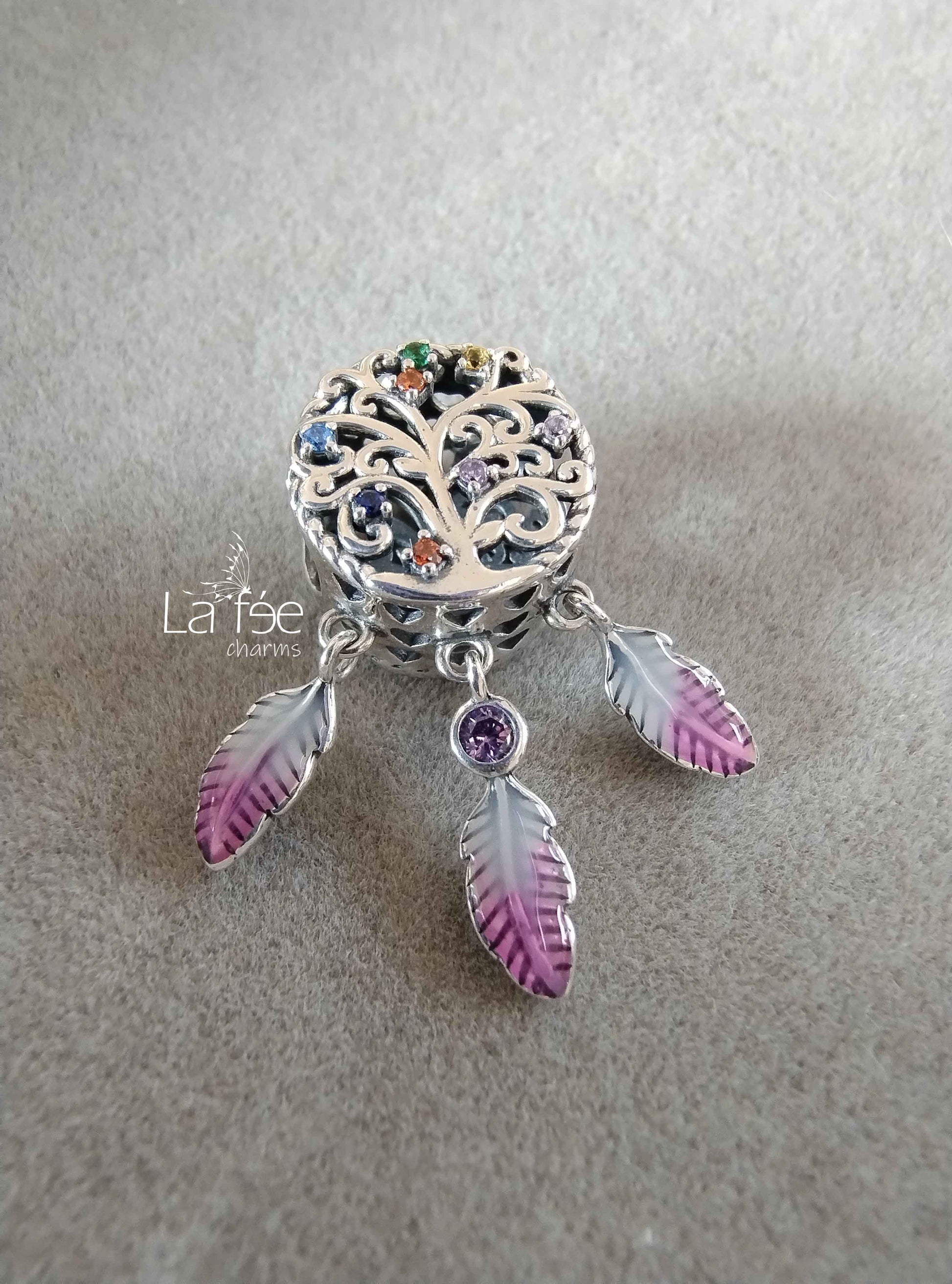 Charm Colgante Árbol de la Vida con Plumas Rosas