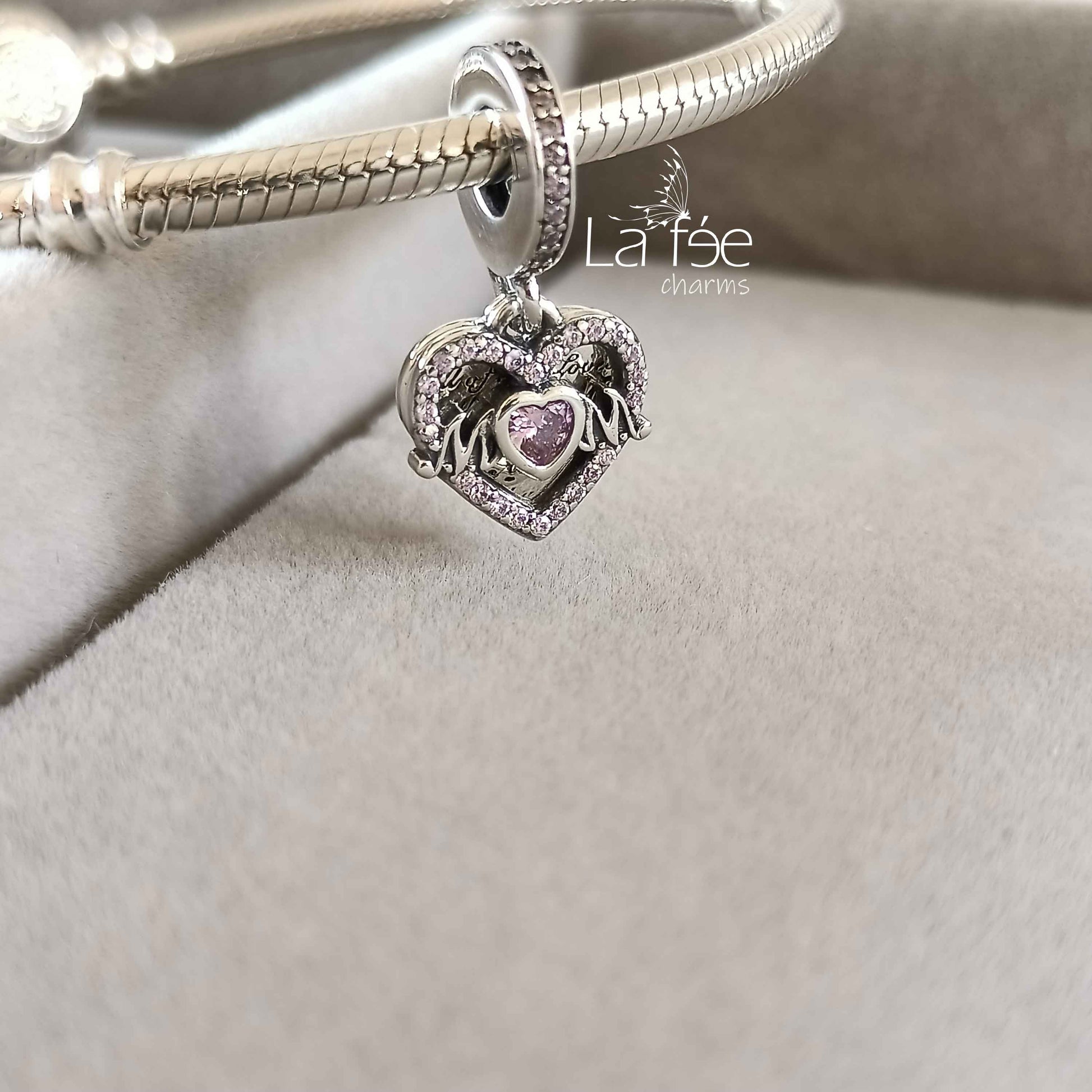 Charm Colgante Corazón Mamá con Zircones