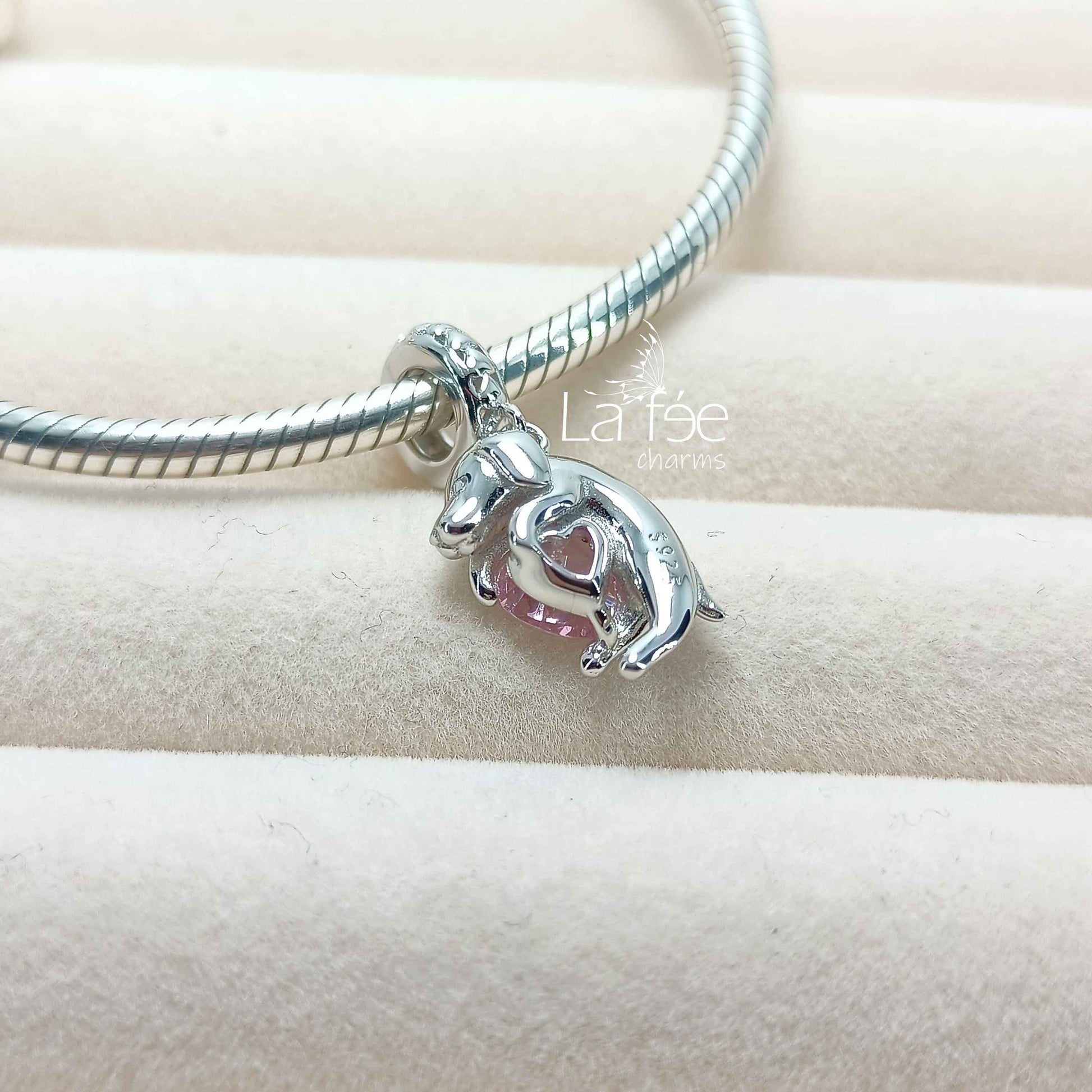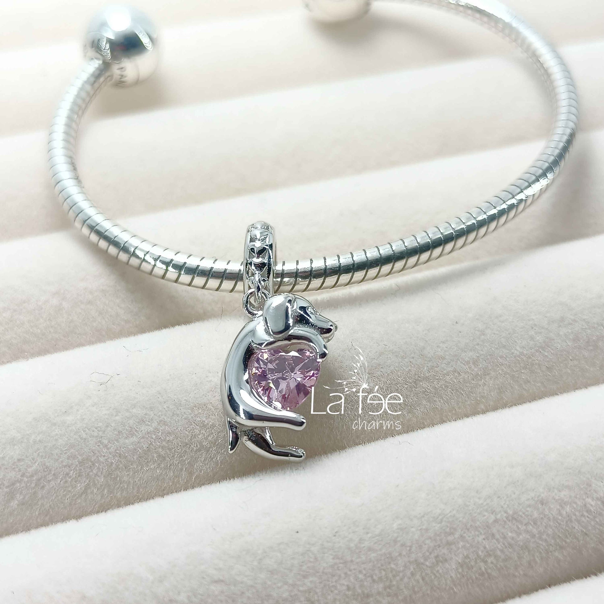 Charm Perrito con Zircón Rosa